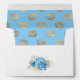 Watercolor floral envelope in accents of baby blue and faux glitter gold designed to be quickly and easily customised to your event specifics.