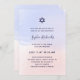 These stylish and trendy Bat Mitzvah or Bar Mitzvah invitations feature a light blue and pink watercolor wash background. Your information appears in a mix of darker, navy blue handwritten script typography and modern sans serif text, and there is also a Star of David.