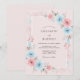 This romantic design features a soft watercolor palette of blush pink and powder blue. Delicate roses and lush greenery create a whimsical atmosphere perfect for a seasonal event. The airy aesthetic captures a dreamlike quality through painterly floral arrangements and a serene pastel background.