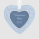 A pretty frame of pastel blue with a subtle floral vine pattern in lighter blue surrounds your own photograph on this Valentine ornament. Within the blue pattern border is a faux diamond heart shaped frame. The other side has the same background and faux diamond border frame with a matching darker blue interior. Your custom text is in silver on the interior. Makes a perfect gift, and complements most photographs. *Please note - the image is printed and does not contain jewels, glitter, or metal.