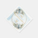 Elevate your Quinceañera celebration with these elegant paper napkins, beautifully designed with watercolor dusty blue flowers, soft eucalyptus greenery, and a shimmering gold glitter frame. The delicate floral arrangements in boho, bohemian, or watercolor styles paired with elegant script lettering create a refined, sophisticated look that perfectly complements any pastel or dusty blue themed party.