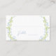 Elegant pastel botanical place cards, featuring light blue watercolor flower blooms intertwined with lush green leaves. Perfect for modern bridal showers, spring summer weddings, or other stylish nature themed celebrations.