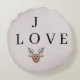 Pastel Blue Reindeer Love Joy Festive Christmas Round Cushion