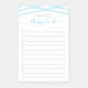 Stylish modern To Do List Post-it® Notes pad featuring the words "things to do" in pastel blue relax cursive script and pastel blue overlapping lines with checkboxes and lines in grey against a white background.
