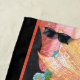 The fabric is soft and fluffy, feels great on the skin. The quality seems to be very good, I have not yet tested how absorbent the fabric is. The colors were vivid, the lines of the design clear, all in all, a great result.