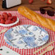 Pastel blue rose pattern paper plate