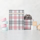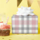 This elegant and contemporary gift wrapping paper showcases a plaid pattern in shades of pastel blush pink, gray, and white, creating a classy and classy simple atmosphere. The paper is perfect for wrapping any gifts in a classic colonial style and complements a charming country cottage or farmhouse theme.