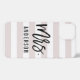 After the wedding, show off your new last name with this sleek and stylish case -- perfect for the honeymoon! Personalised bride design features "Mrs. [lastname]" in modern black typography on a background of subtle pastel blush pink and white stripes. Use the field provided to personalise with your new last name.