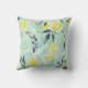 Trendy bohemian leafy foliage pattern throw pillow in chic pastel shades of crème, yellow, blue, green and pink.