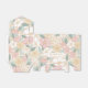All-over patterned Boho illlustrated florals in soft pastels of gold, blush pink, and mint pairs with coordinating Bridal Shower suite