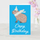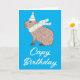 A funny card featuring an illustration of a capybara wearing a pastel pink, blue and yellow Birthday party hat and scarf, with the pun Capy Birthday below. The inside reads, “Wishing you a special day filled with all the things you love. Happy Birthday!”