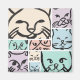 Add a playful artistic touch to your everyday style with this minimalist cat illustration design, featuring expressive feline faces drawn in bold black line art against soft pastel backgrounds.