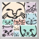 Add a playful artistic touch to your everyday style with this minimalist cat illustration design, featuring expressive feline faces drawn in bold black line art against soft pastel backgrounds.
