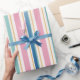A seamless pattern featuring soft pastel stripes in shades of pink, teal, and light yellow, giving a festive and gentle holiday feel. The vertical stripes alternate in width, adding a touch of playfulness and charm to the design. This pattern’s subtle colour palette creates a warm and inviting seasonal vibe.