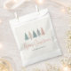 Holiday favour bag with pastel Christmas trees and elegant modern script.