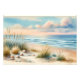 Soft coastal serenity unfolds through a dreamy watercolor scene of rolling sand dunes, sea oats, scattered shells, and a calm horizon where gentle waves meet a pastel sky. Airy brushstrokes and blended hues of blush, sky blue, seafoam, and warm sand create a tranquil, cottagecore coastal mood that feels both nostalgic and peaceful. The composition balances openness and intimacy, inviting quiet reflection and a sense of seaside stillness. Whimsical yet grounded, this artwork carries a soothing, faith-friendly calm that complements cozy coastal, boho, and shabby chic aesthetics while evoking rest, simplicity, and gentle beauty by the shore. AI generated artwork.