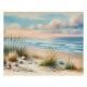 Soft coastal serenity unfolds through a dreamy watercolor scene of rolling sand dunes, sea oats, scattered shells, and a calm horizon where gentle waves meet a pastel sky. Airy brushstrokes and blended hues of blush, sky blue, seafoam, and warm sand create a tranquil, cottagecore coastal mood that feels both nostalgic and peaceful. The composition balances openness and intimacy, inviting quiet reflection and a sense of seaside stillness. Whimsical yet grounded, this artwork carries a soothing, faith-friendly calm that complements cozy coastal, boho, and shabby chic aesthetics while evoking rest, simplicity, and gentle beauty by the shore. AI generated artwork.