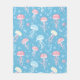 Upgrade your home aesthetic with a luxurious touch by adding this stunning blanket adorned with a seamless pastel blue and pink jellyfish design.