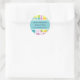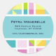 A unique sticker that borrows its style from Mondrian. Pastel coloured squares and triangles come together and make a soft grid. Your name and most important contact information stand out against the turquoise panel. Great as envelope seals, return address labels or sealing customer purchases. Available in alternate colours with matching products.