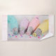 Towel set with a pretty pastel coloured photograph. Featuring cake decorating items in pastel blue, pink, peach and yellow. Set upon a wood table with little colourful beads.