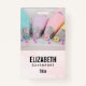Personalised name badge with a pretty pastel coloured photograph. Featuring cake decorating items in pastel blue, pink, peach and yellow. Set upon a wood table with little colourful beads. A pink watercolor background with your personalised text written over top.