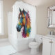 This enchanting shower curtain showcases a beautiful portrait of a horse illustrated in soft pastel colours. The gentle hues create a serene and calming atmosphere, making it a perfect centrepiece for any bathroom. The horse's expressive features are highlighted with delicate strokes, capturing its grace and elegance. This artistic design adds a touch of whimsy and charm, transforming your bathroom into a tranquil retreat where nature and art harmoniously blend.