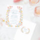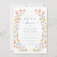 Elegantly refined, this rustic bohemian bridal shower invitation showcases a delicate wreath of colourful pastel wildflower and spring flower blooms. The invitation is adorned with modern calligraphy text in a sophisticated light blue, creating a timeless and graceful design. Perfect for setting the tone for a memorable celebration.