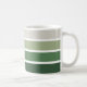 This mug design offers a bold and refreshing take on a classic pattern with its striking horizontal stripes. The design features a gradation of greens, from a light pastel at the top, transitioning to a rich forest green at the base. This natural palette is crisply divided by clean white lines, adding a modern and crisp visual effect to the mug.
