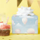 Pastel Colours Hot Air Balloons on Blue Sky Wrapping Paper. This pattern is ideal for kids birthdays as well as for baby showers.