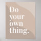 This modern minimalist poster featuring the inspirational phrase "Do your own thing." in an elegant serif font. The background showcases a stylish abstract wave design in soothing neutral beige, tan, and soft brown hues, creating a warm and calming aesthetic. This wall art is perfect for home offices, bedrooms, dorm rooms, or creative spaces, adding a touch of motivation and contemporary decor.