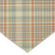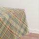 A colourful tablecloth with a pattern of random stripes in pastel shades of blue, red, green and yellow, in diagonal striped checks or tartan.