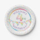 Make your child’s fourth birthday celebration extra special with these festive pastel party plates, featuring watercolor confetti, rainbow bunting, and customisable name and age. Perfect for party animal or rainbow-themed birthdays, these vibrant plates bring colour to your table while making cleanup quick and easy.