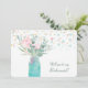 Pretty and a bit whimsical is this modern floral bridesmaid invitation, which features a blue green mason jar holding pale pink and white flowers with soft teal greenery. A background of pastel pink and blue confetti combines with gold flecks to add interest and contrast to the delicate watercolor flowers. Your custom text is in teal at the bottom right. The back of the card has additional text fields; make it say whatever you'd like! Be sure to see the matching wedding products, including weddings invitations, in our store. *This design uses artwork from LABFcreations on Etsy.