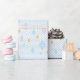 A decorative pattern featuring small star shapes combined with soft crystal-like diamond motifs in powder blue, soft mustard and lavender grey.