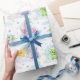 Wrapping paper featuring cute pastel dragons paired with rainbows and scattered diamonds on a white background. You can find more matching products and other wrapping paper options in our store.