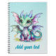 Meet our friendly baby dragon on a dreamy aqua blue background with gentle white dots. This magical pastel notebook is perfect for kids who love fantasy creatures and adventures. Personalise with a name for an extra special touch!