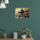 Pastel Drawing Ancient Pagoda Flowering Bush Poster