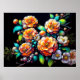 Pastel Drawing Asian Orange Flower Blossoms Branch Poster