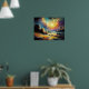 Pastel Drawing Colourful Nighttime Landscape Moon Poster
