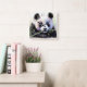 Pastel Drawing of Panda Bear Bamboo II Square Wall Clock