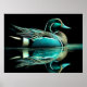 Pastel Drawing Teal Duck on Water The aspect ratio is 4:3.