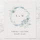 Pastel Dusky Blue Floral Wreath Wedding Monogram Wine Label