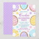 Celebrate Easter with this playful and colourful cookie decorating party design. Featuring pastel cookies in pink, yellow, blue, and purple with whimsical icing patterns, this layout evokes springtime joy and creative fun. Star accents add sparkle, while the vibrant fonts and central alignment keep the mood festive and family-friendly. Perfect for Easter gatherings, kids’ parties, or baking-themed events, this design blends sweetness with seasonal charm.