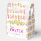 Get your easter hunt started with this bright and colourful rainbow pastel easter egg floral favour box. The design features watercolor eggs arranged in a pattern, flowers, and leaves typography saying "Happy Easter" and name in cursive script. Simply personalise with your name (or kid's name).