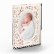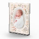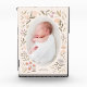 Whimsical floral newborn keepsake photo block featuring hand drawn illustration of wildflowers in pastel colours. Your baby's photo can be in the middle with the baby's name at the bottom.