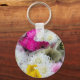 Pastel Floral Pink, Yellow & White Chrysanthemum Key Ring