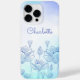 Pastel Floral Silhouette Overlay Personalised Name iPhone 14 Pro Max Smart Phone Case features features a pastel background with a floral overlay with your personalised name in elegant hand written calligraphy script. Perfect gift for Christmas, birthday, Mother's Day and more. Designed by ©Evco Studio www.zazzle.com/store/evcostudio