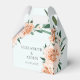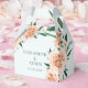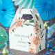 This romantic favour box features soft peach tones and detailed floral illustrations with lush greenery – perfect for summer weddings, rustic garden celebrations, or bridal showers personalised with your names and wedding date.