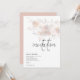 Subtle minimal style with beautiful pastel florals in shades of blush pink, peach and soft grey across the top from the right hand side. The header Invitation is in a stylish set script typography slightly aligned to the right. The rest of the text is to the bottom left hand side. You can easily personalise the editable text to your own details and also change the font style and colours of this text if you wish via the customise further option, as well s the coordinating blush background colour on the reverse.