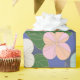 A lovely design of pastel abstract flowers with blue shadow leaves in the back.